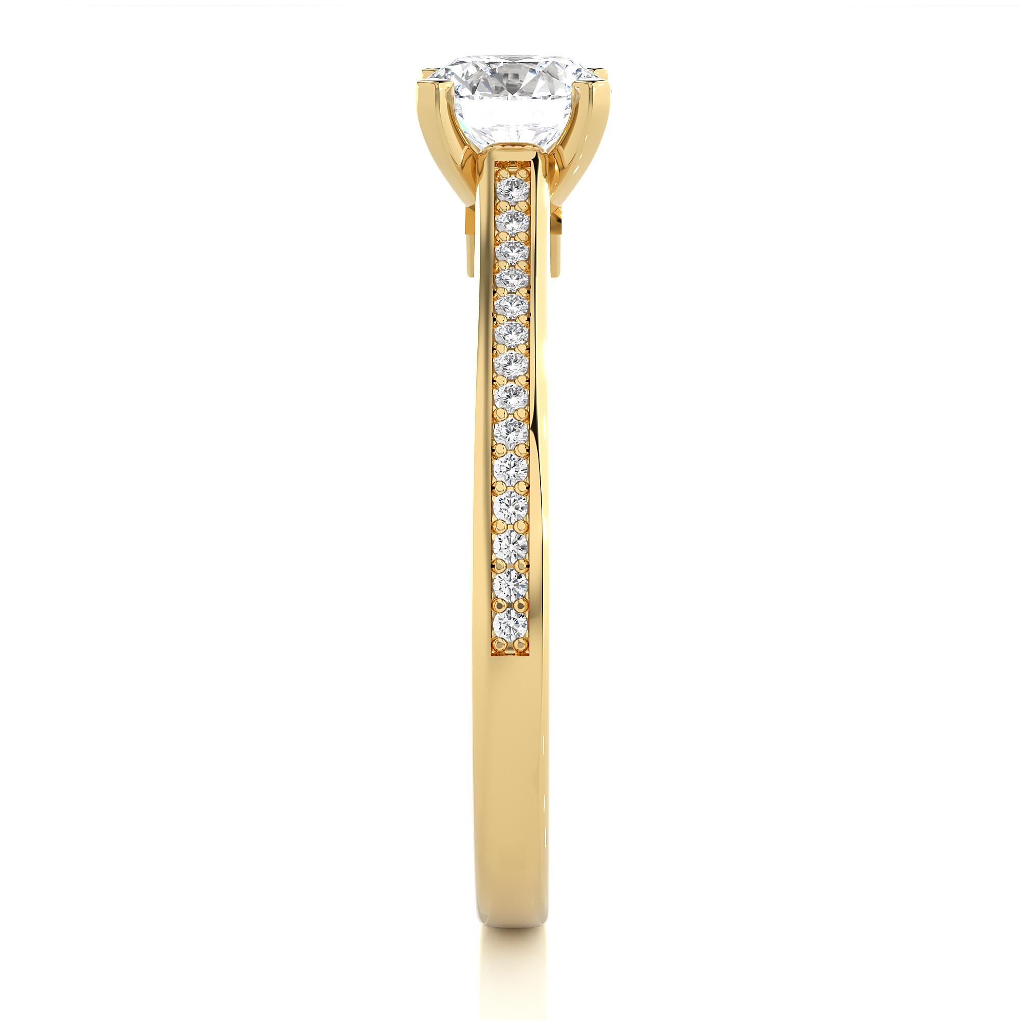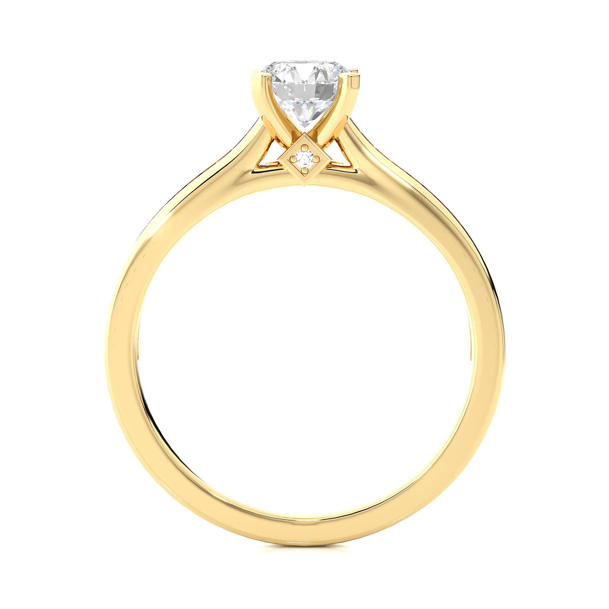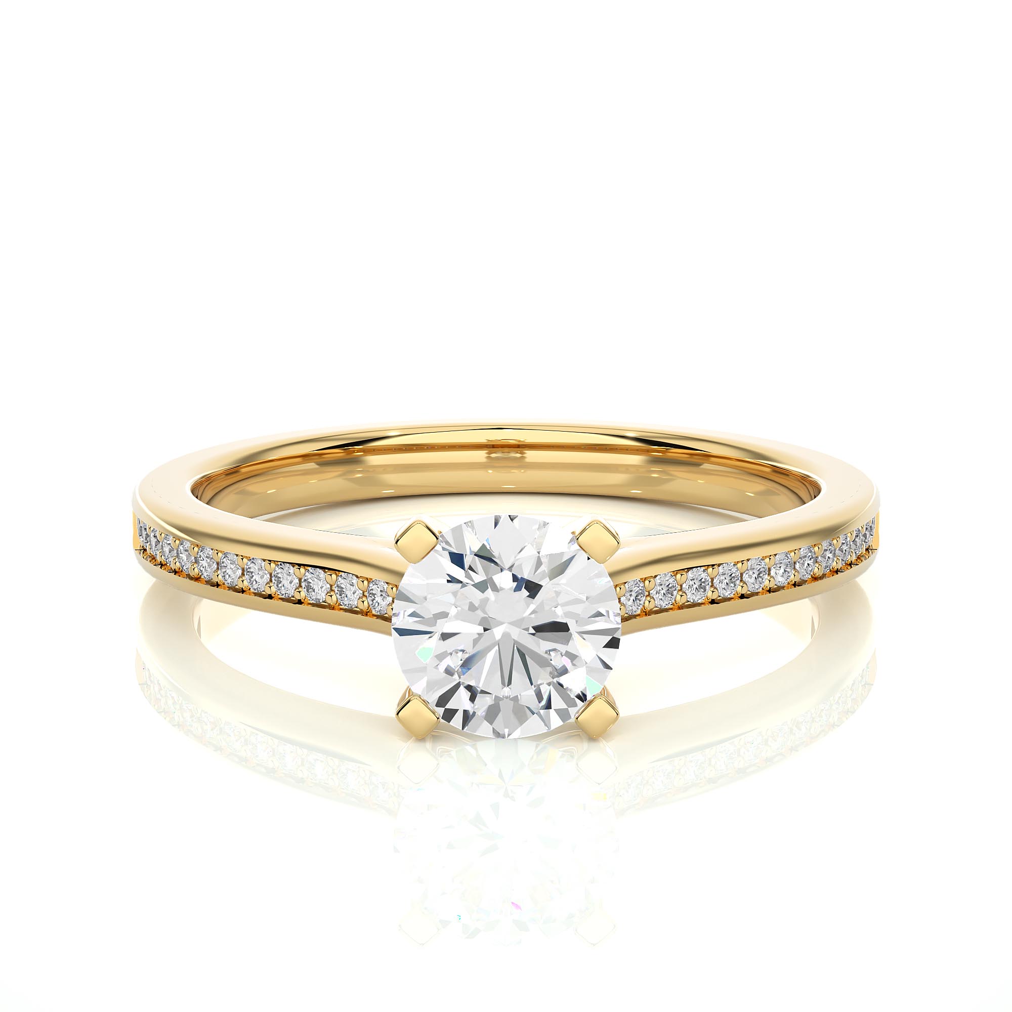 Soliatire Diamond ring on minimal diamond band – Yellow Gold
