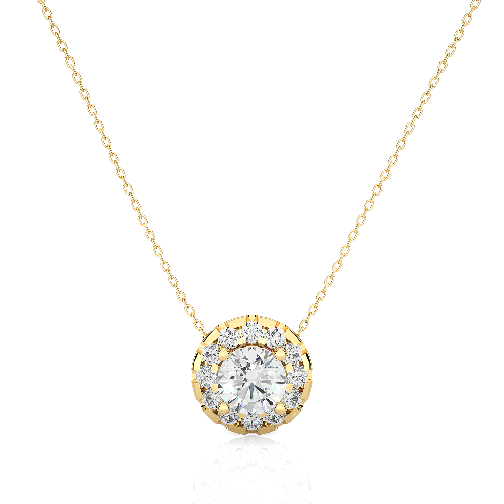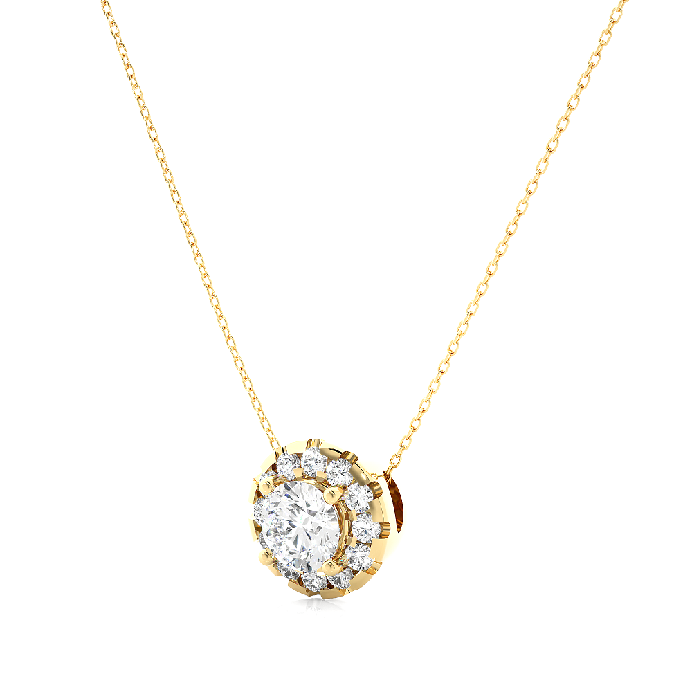 Solitaire on diamond halo pandant with chain – Yellow Gold